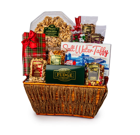 Our Gift Baskets are filled with fresh quality products that tell your gift recipient that you care enough to gift the very best! High quality nut & snack mixes, chocolate covered treats, fudge & candies are examples of the wonderful products we fill our baskets with - your gift recipient will be treated well with any of our lovely gift baskets --- or treat yourself with a great variety of the finest assortment to delight the palette!
